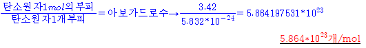탄소의 물 부피와 실험에서 얻은 탄소 원자의 부피로부터 계산한 아보가드로의 수