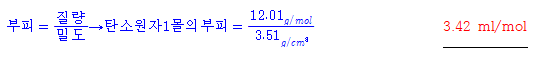 다이아몬드 밀도 (3.51g/ml)로부터 계산한 탄소의 몰 부피